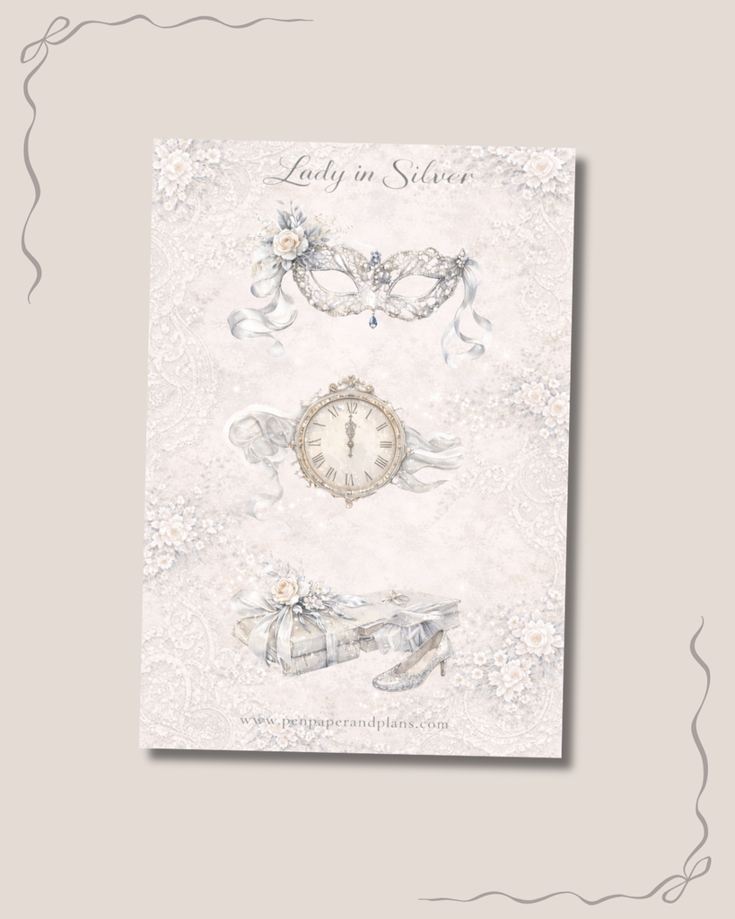 Designed for journaling, planning, and memory keeping, each sheet layers beautifully to create spreads that feel gentle, romantic, and storybook-inspired.