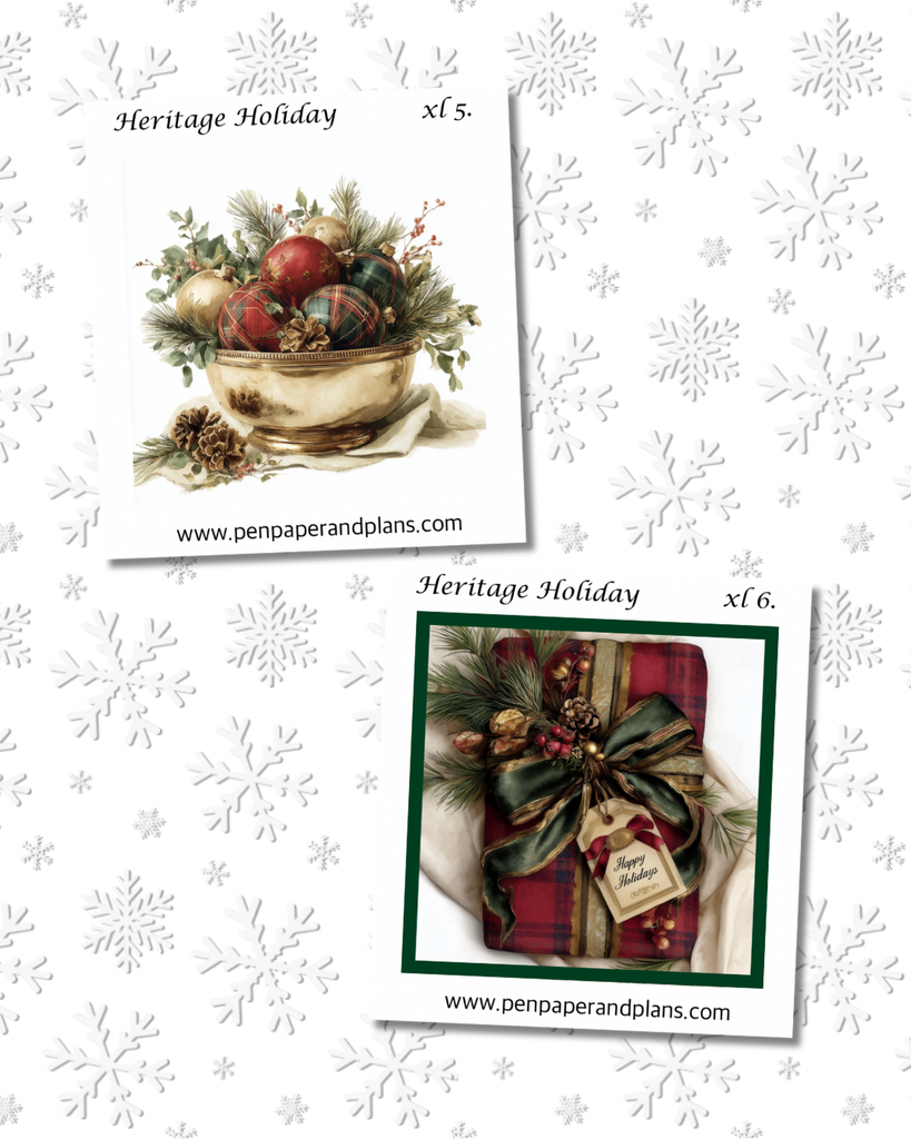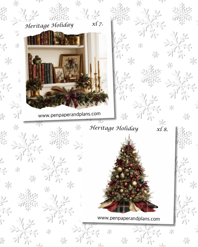 Deck your planner with festive flair! These larger Heritage Holiday stickers bring all the cozy elegance of a classic Christmas to your spreads. Think shimmering brass accents, crisp silver details, and rich tartan patterns that'll make your pages feel like a holiday celebration. Perfect for adding that timeless, sophisticated touch to your planning and journaling—because this year, traditional charm is totally in. Get ready to make your planner the most stylish season yet!
