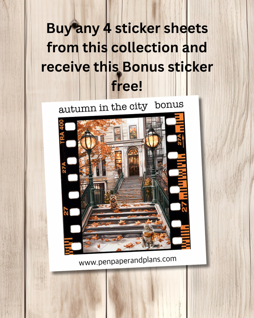 Capture the cozy charm of fall with these Autumn in the City Deco Stickers! Sized just right at 3.5 x 4.25 inches per quarter sheet, they bring all the city vibes and warm autumn mood to your planners, journals, or notebooks. Perfect for adding a playful seasonal touch wherever you stick them!