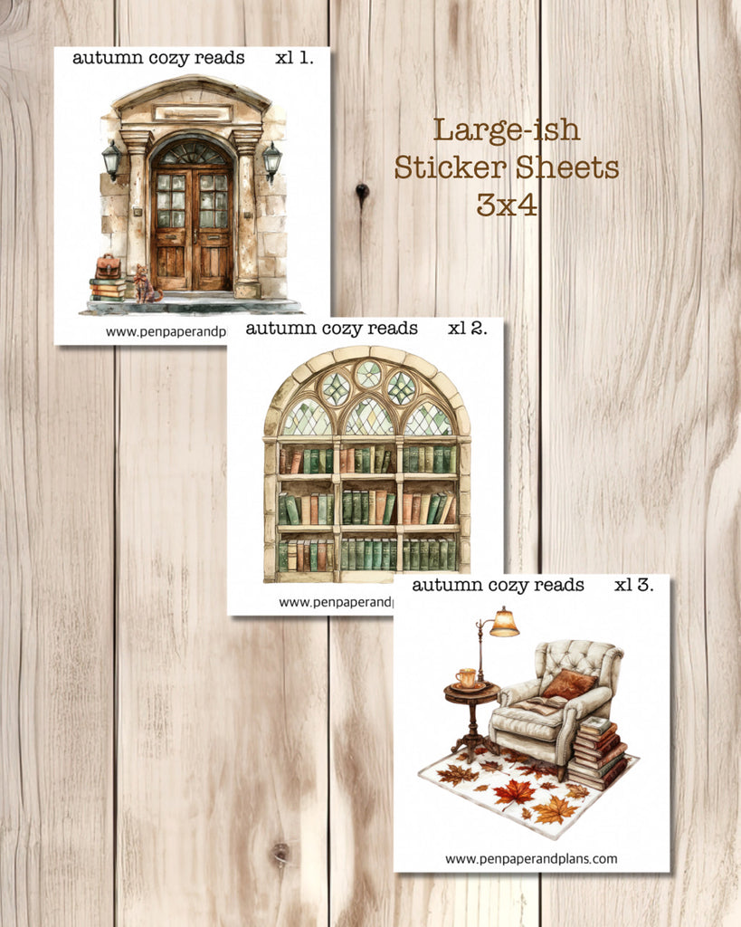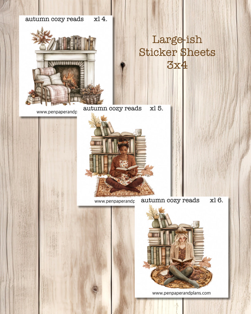 Celebrate cozy autumn moments with these charming larger stickers, perfect for adding flair to your reading journals, planners, or creative collages. Let the warm hues and playful designs bring that perfect fall vibe to every page you decorate!