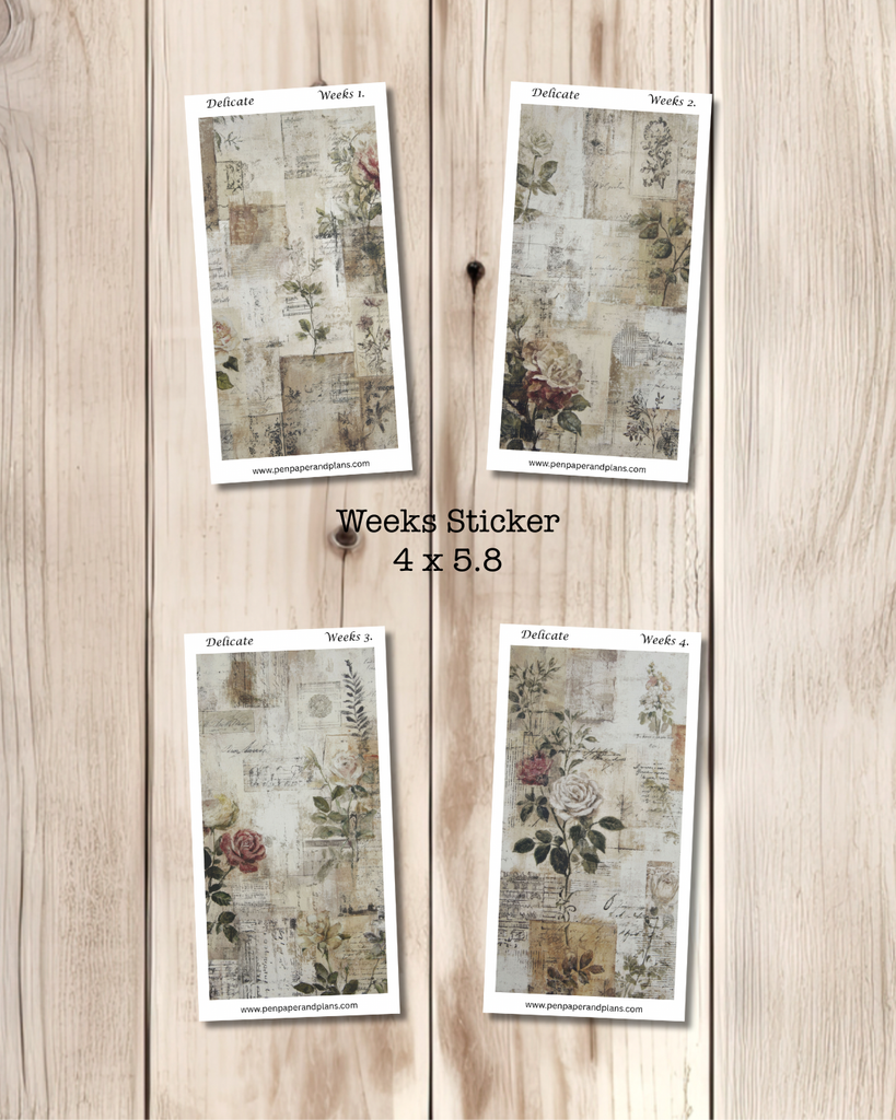 Transform your planner or journal with these enchanting vintage collage stickers. Each full-page design features delicate, nostalgic elements perfect for adding artistic flair to your pages. Whether you're decorating a spread or creating a mood, these stickers bring timeless charm and creative inspiration to every layout. Ideal for planners, journals, and mixed media projects.