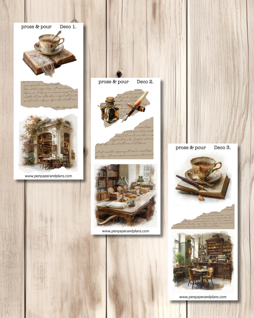 Capture your cozy dark academia and coffee moments with the Prose & Pour Deco Stickers & Tearable Washi. Perfect for journaling, decorating, or adding a literary touch to your planners, these playful stickers bring warmth and charm to your creative space. Tear and stick to savor every page and pour!