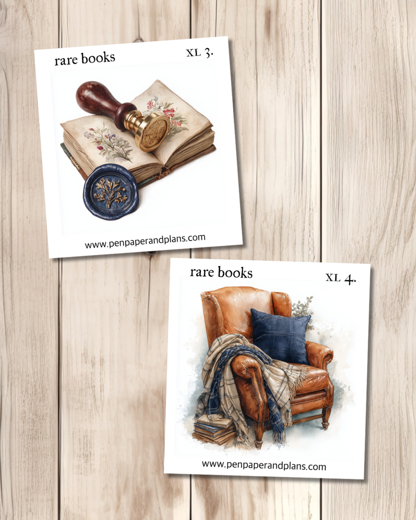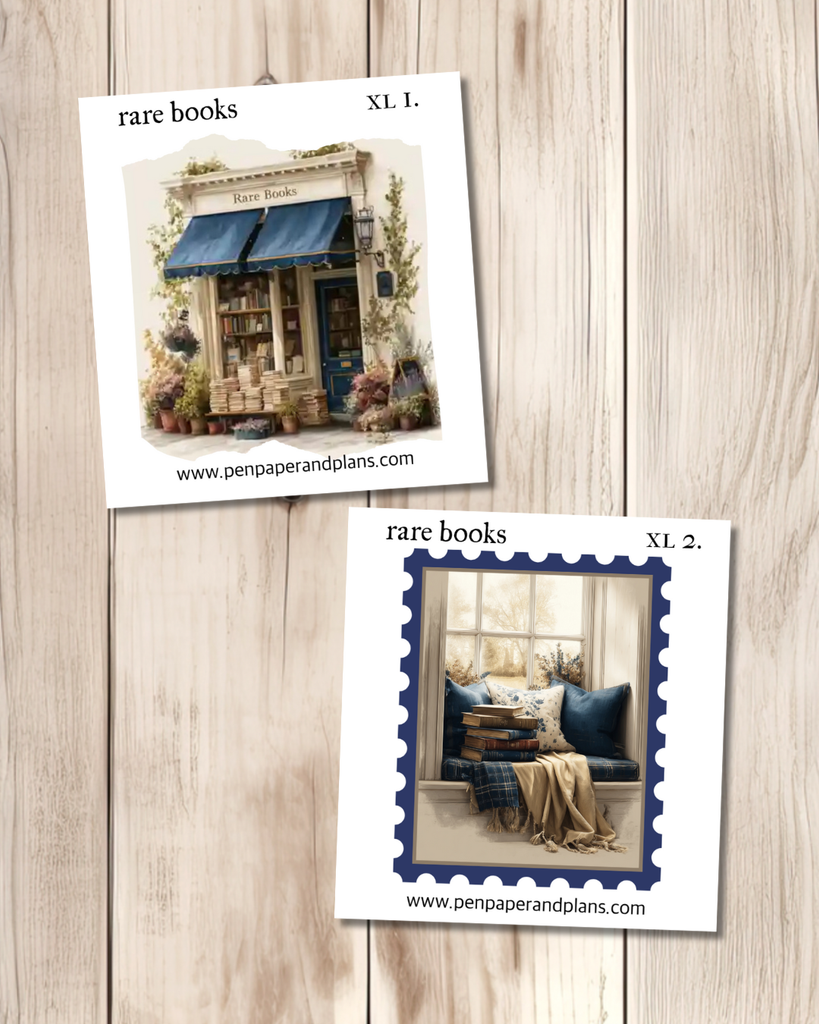 Calling all book lovers and journal enthusiasts! These oversized bookish stickers are your ticket to decorating reading journals and planner spreads with literary flair. From classic tome illustrations to whimsical reading scenes, each sticker celebrates the joy of getting lost in a good book. The extra-large format makes them perfect for making a bold statement on your pages without overwhelming your layout. Whether you're tracking your TBR pile or marking milestone reads, these stickers add personality and charm to every spread. Stack them, mix them, or let them shine solo—your planner will thank you.
